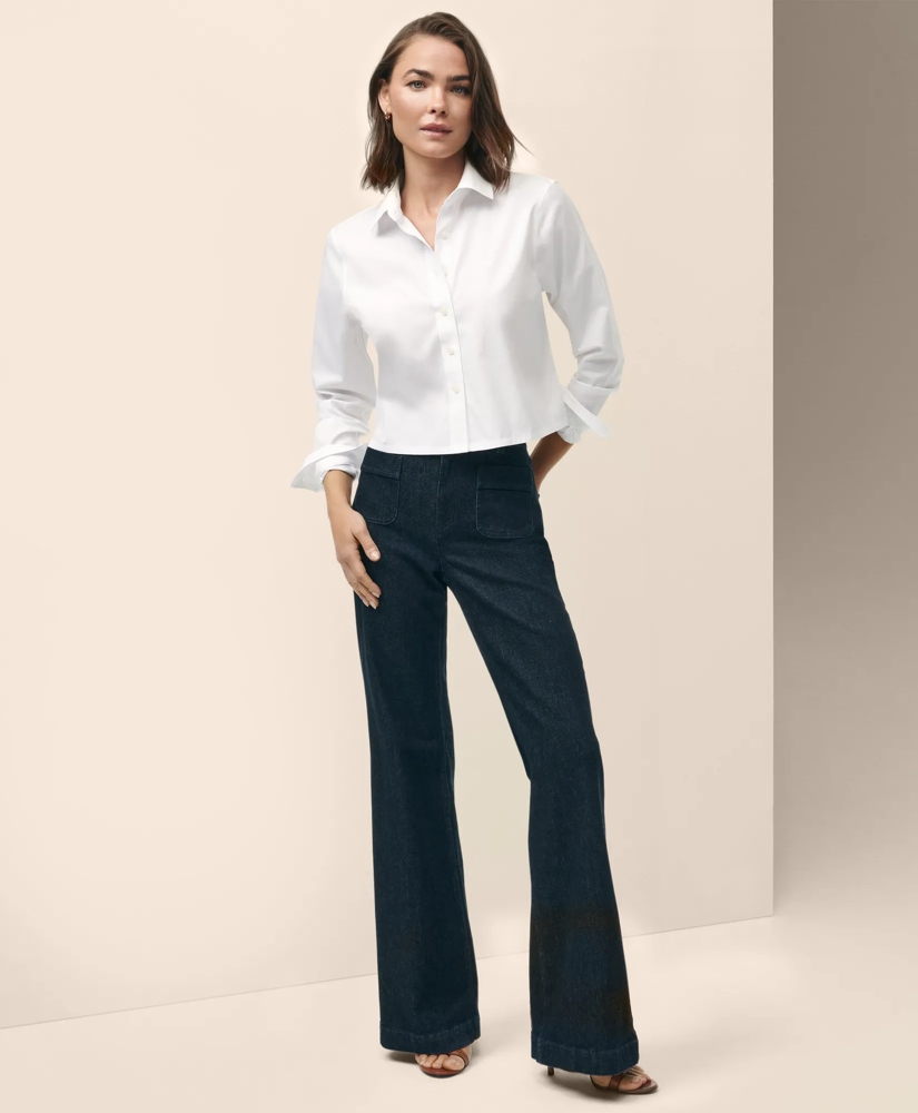 Refresh your shirt collection with our updated silhouette woven from the world's finest cotton. A perfectly cropped length makes it an ideal piece to instantly modernize your look. Wear it buttoned up with your favorite pants, trousers and skirts, or open and layered over a tank with jeans.