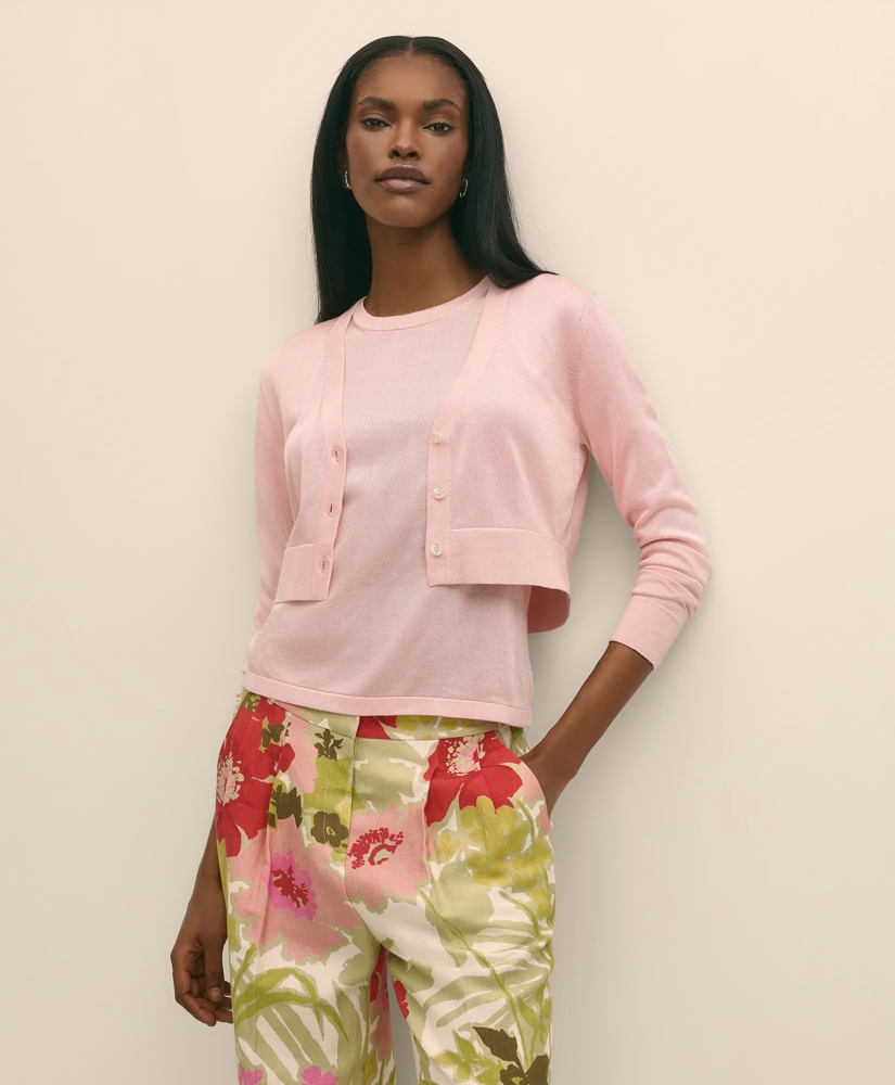 Just the layer you need to throw on over dresses, shells, tees and shirts. We crafted our cropped cardigan in a fine-gauge knit from beautifully smooth fibers that shimmer with a subtle metallic finish.