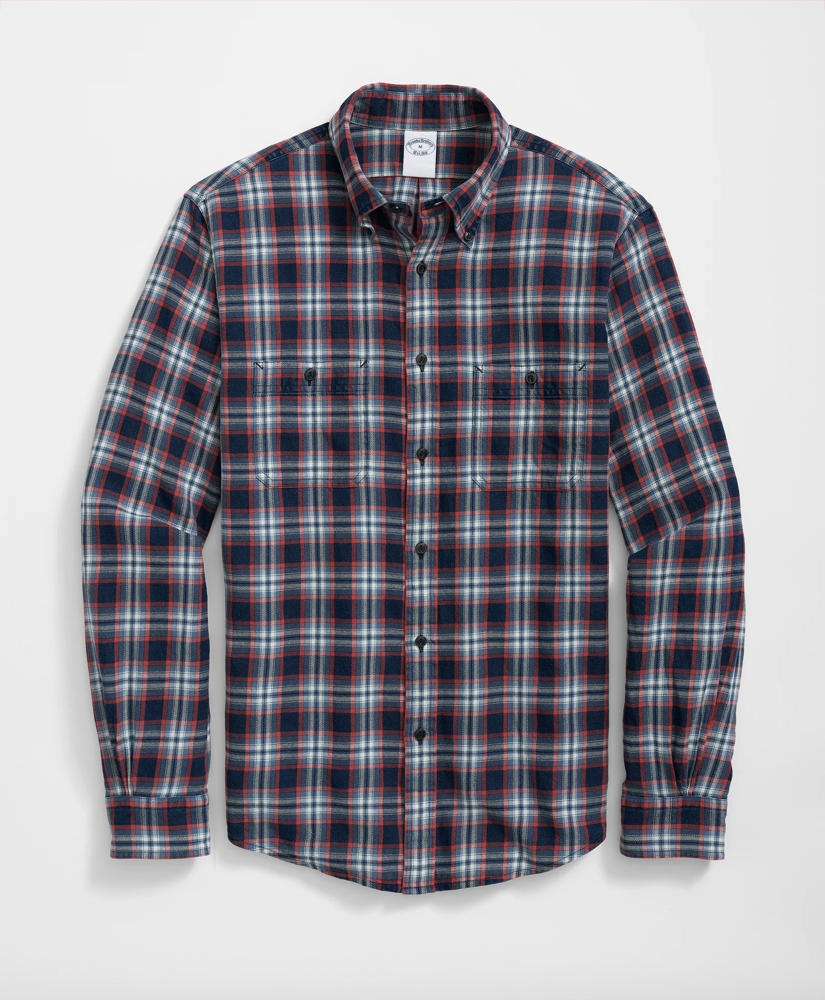 What makes a perfect work shirt? It's the ideal weight to transition between changing temps, so it can be worn layered over a tee or as a light jacket. It has a soft garment-wash that makes it feel lived-in and makes it better with age. It's finished with two chest pockets and a red-indigo plaid pattern. Here it is: a wardrobe hero you'll reach for time and again.