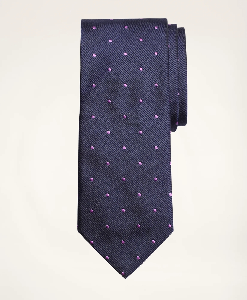 Pure silk expertly woven in Italy in a classic dot pattern. The Rep tie is made from silk that is woven in such a way to produce tight diagonal ribs that make for deep brilliant colors.