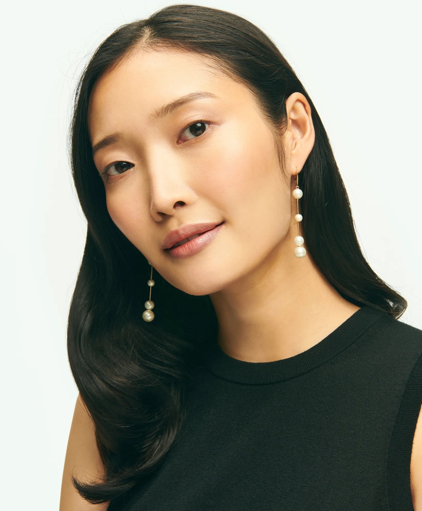Better than drops of sunshine? Drops of faux pearls. Suspended on a dangling gold chain, this is the perfect pair to wear to the party.