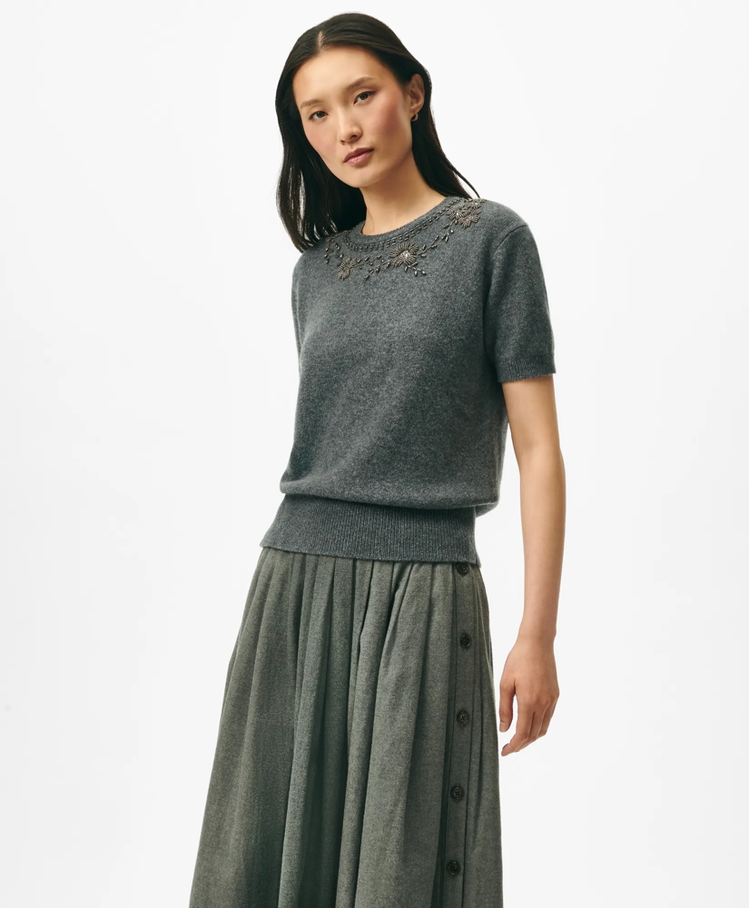 Embellished Twinset Short Sleeve-Shell in Merino Wool