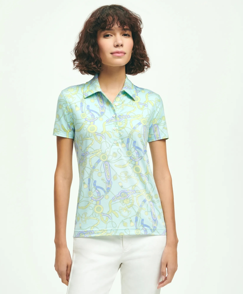 With a wink to the style's sporty origins, our jersey knit printed polo features an equestrian-inspired print.