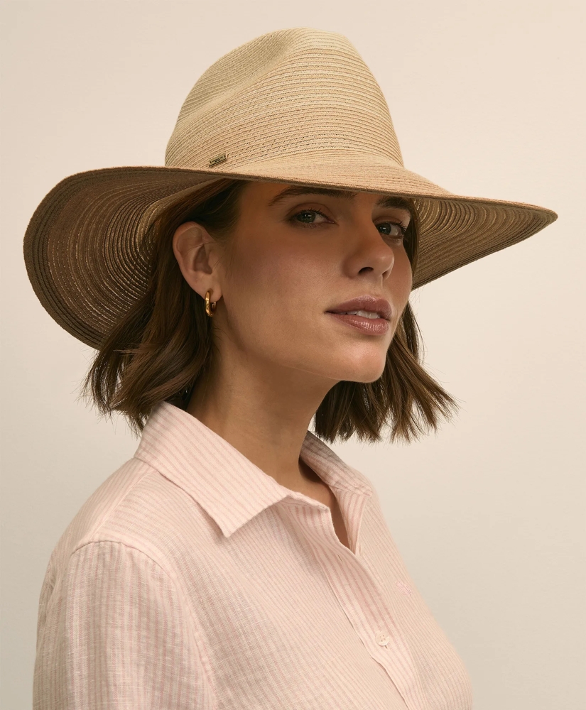 With an innovative approach to luxury, Eugenia Kim marries clean, classic shapes with feminine modernity and a touch of wit. Her fedora rendered in a hemp-cotton blend is as beautiful as it is functional. It's crafted to fold and unpack in pristine condition, for all your moments in the sun.