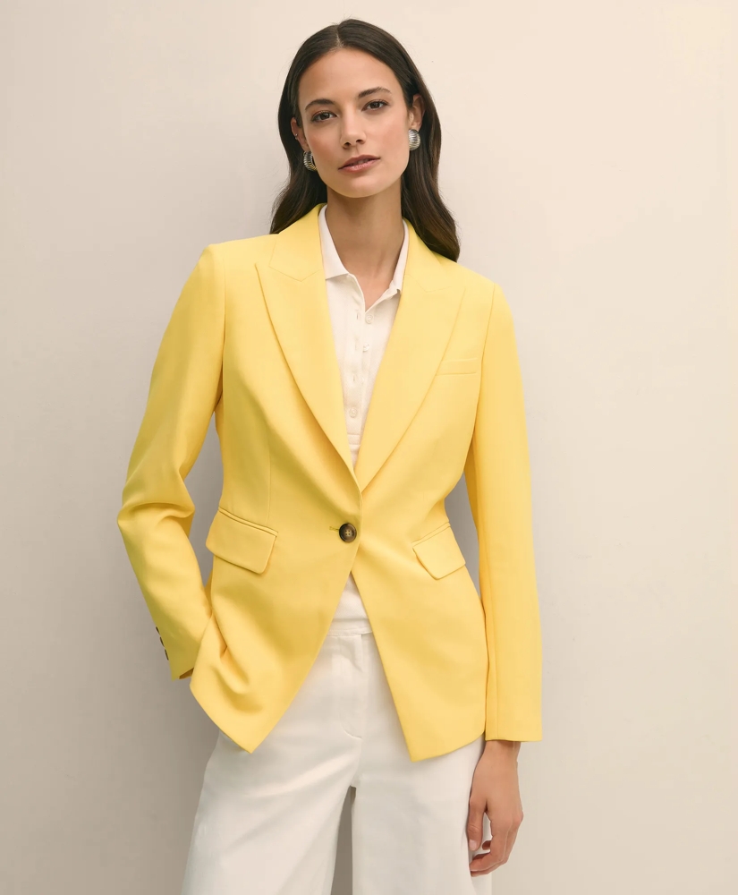 Our exceptional fine twill crepe has a new silhouette, just in time for your seasonal refresh. We added elevated peak lapels to our faultless tailoring. Just-right stretch gives you all-day comfort and our grosgrain details nod to the highest quality. Pair with our matching trousers for a coordinated look.