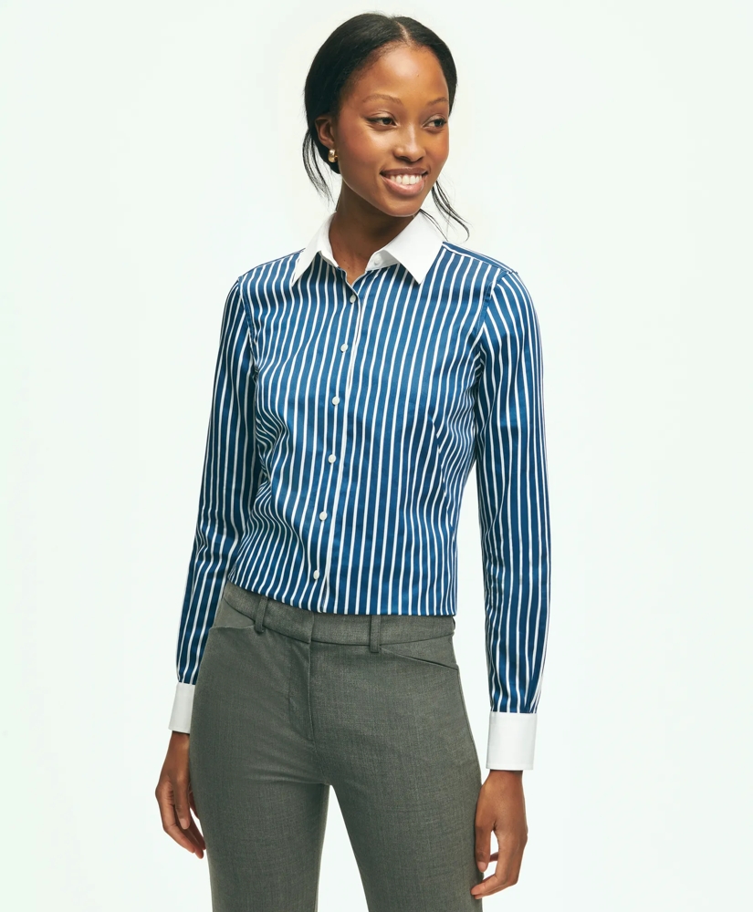Fitted Stretch Cotton Sateen Dress Shirt with Contrast Collar & Cuffs