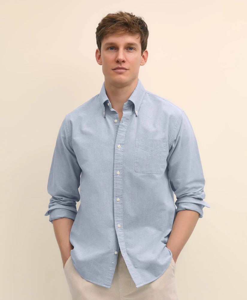 Our bestselling Friday Shirt is cut in cotton oxford washed for softness and a vintage silhouette to give you that Friday feeling every day of the week. With a slightly relaxed fit and signature Brooks Brothers details like the Original Polo® Button-Down collar we invented and signature 6-Pleat Shirring® at the cuff, this versatile shirt looks great tucked or untucked, pressed or even a little rumpled.