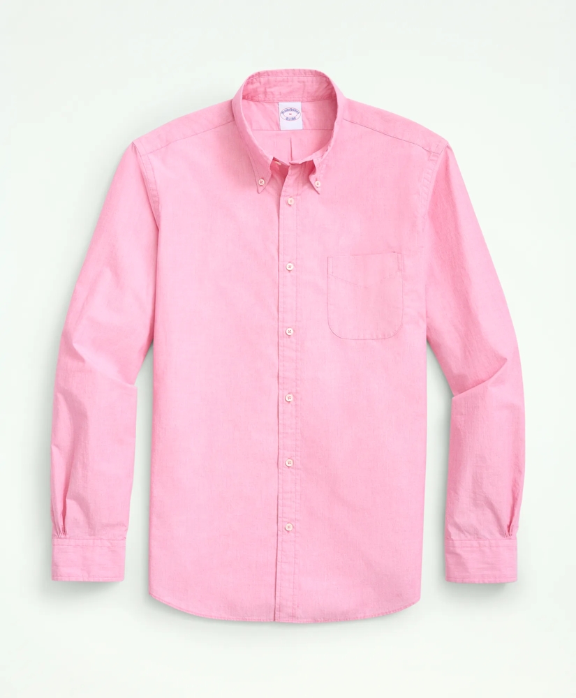 Our new Friday Shirt is cut in a cotton poplin washed for softness and a vintage look to give you that Friday feeling every day of the week. With a slightly relaxed fit and signature Brooks Brothers details like the Original Polo® Button-Down collar we invented and 6-Pleat Shirring® at the cuff, this versatile shirt looks great tucked or untucked, pressed or a little rumpled.
