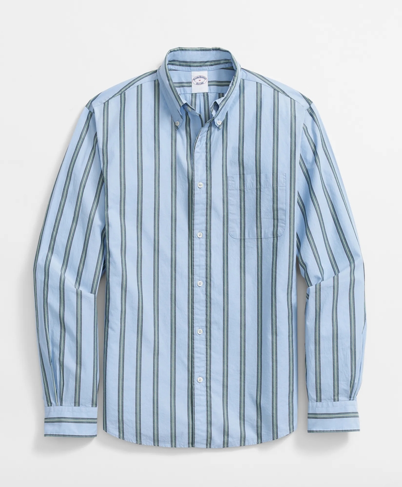 Our bestselling Friday Shirt is cut in cotton poplin washed for softness and a vintage silhouette to give you that Friday feeling every day of the week. With a slightly relaxed fit and signature Brooks Brothers details like the Original Polo® Button-Down collar we invented and signature 6-Pleat Shirring® at the cuff, this versatile shirt looks great tucked or untucked, pressed or even a little rumpled.