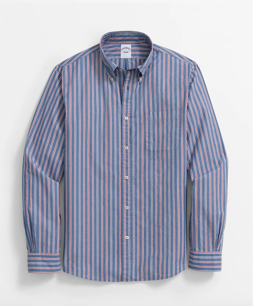 Our bestselling Friday Shirt is cut in cotton poplin washed for softness and a vintage silhouette to give you that Friday feeling every day of the week. With a slightly relaxed fit and signature Brooks Brothers details like the Original Polo® Button-Down collar we invented and signature 6-Pleat Shirring® at the cuff, this versatile shirt looks great tucked or untucked, pressed or even a little rumpled.