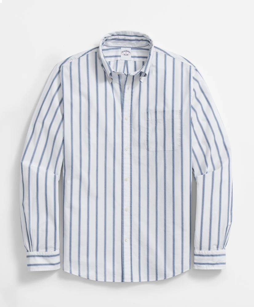 Our bestselling Friday Shirt is cut in cotton poplin washed for softness and a vintage silhouette to give you that Friday feeling every day of the week. With a slightly relaxed fit and signature Brooks Brothers details like the Original Polo® Button-Down collar we invented and signature 6-Pleat Shirring® at the cuff, this versatile shirt looks great tucked or untucked, pressed or even a little rumpled.