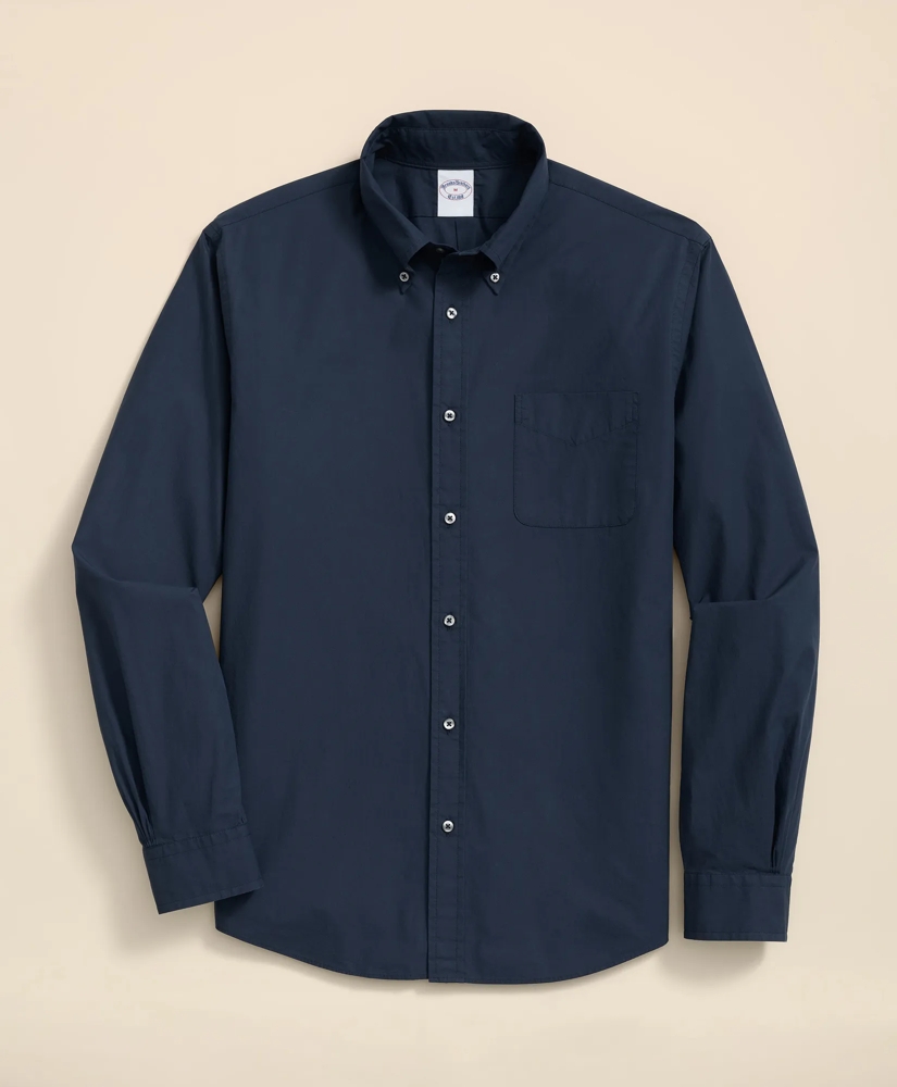 Our bestselling Friday Shirt is cut in cotton poplin washed for softness and a vintage silhouette to give you that Friday feeling every day of the week. With a slightly relaxed fit and signature Brooks Brothers details like the Original Polo® Button-Down collar we invented and Signature 6-Pleat Shirring® at the cuff, this versatile shirt looks great tucked or untucked, pressed or even a little rumpled.