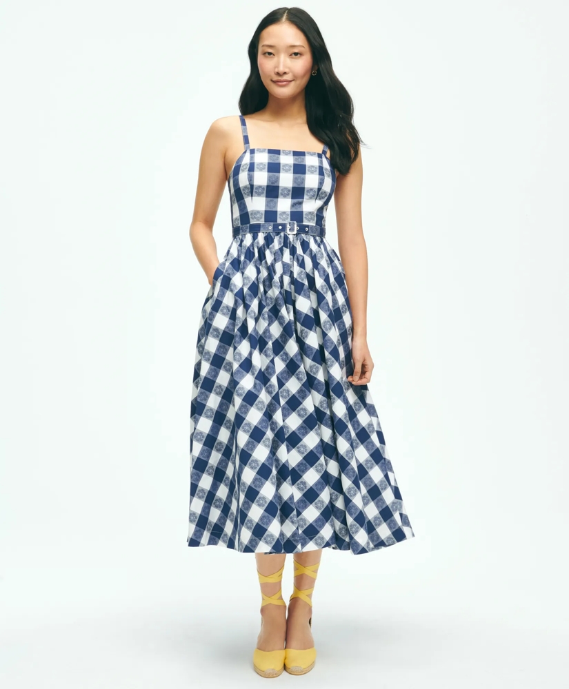 Our signature gingham adorns this feminine silhouette to perfection. Sweet spaghetti straps and a fitted bodice flatter in all the right ways. We added side-seam pockets for convenience, and adjustable straps and back smocking for a perfect fit.