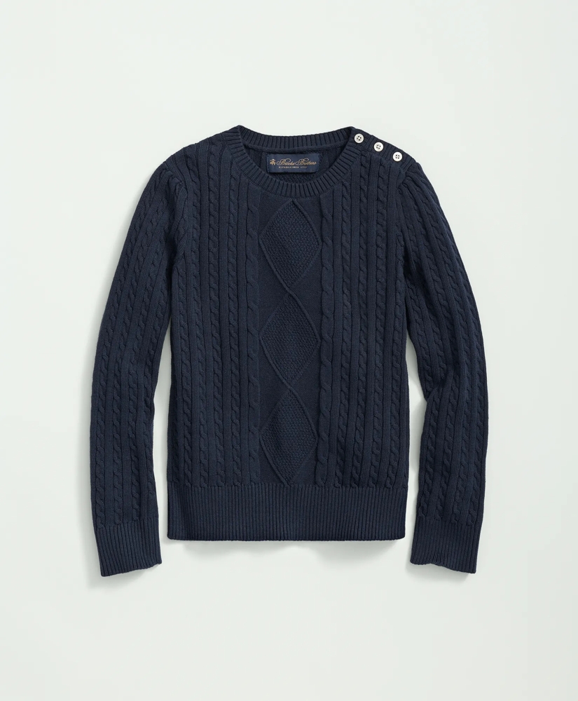 Girls Cotton Cable Crewneck Sweater