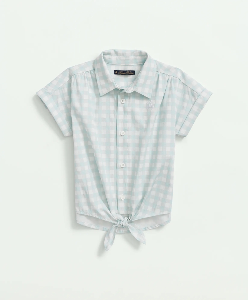 Girls Cotton Tie Front Short Sleeve Gingham Shirt