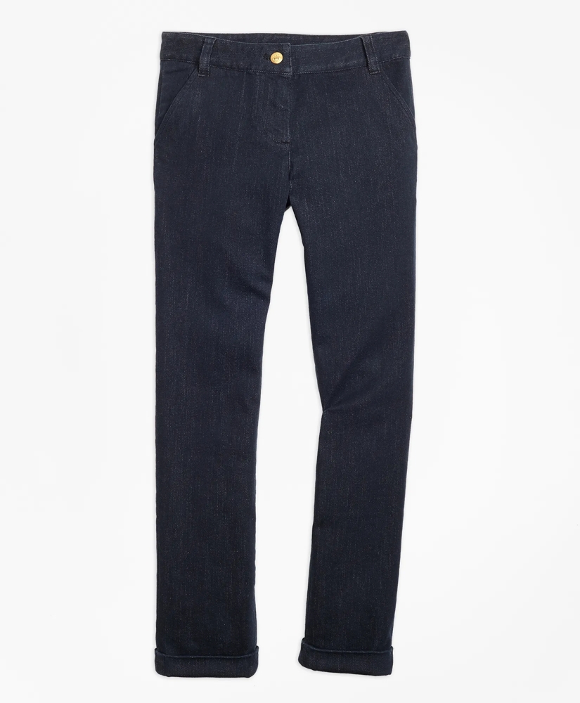 Dark denim skinny jeans match back effortlessly to all tops. True cuff at hem and stretch in the fabric for comfort. Hidden adjustable waistband on sizes 4-16 fine-tunes for the perfect fit. Machine wash. Imported.