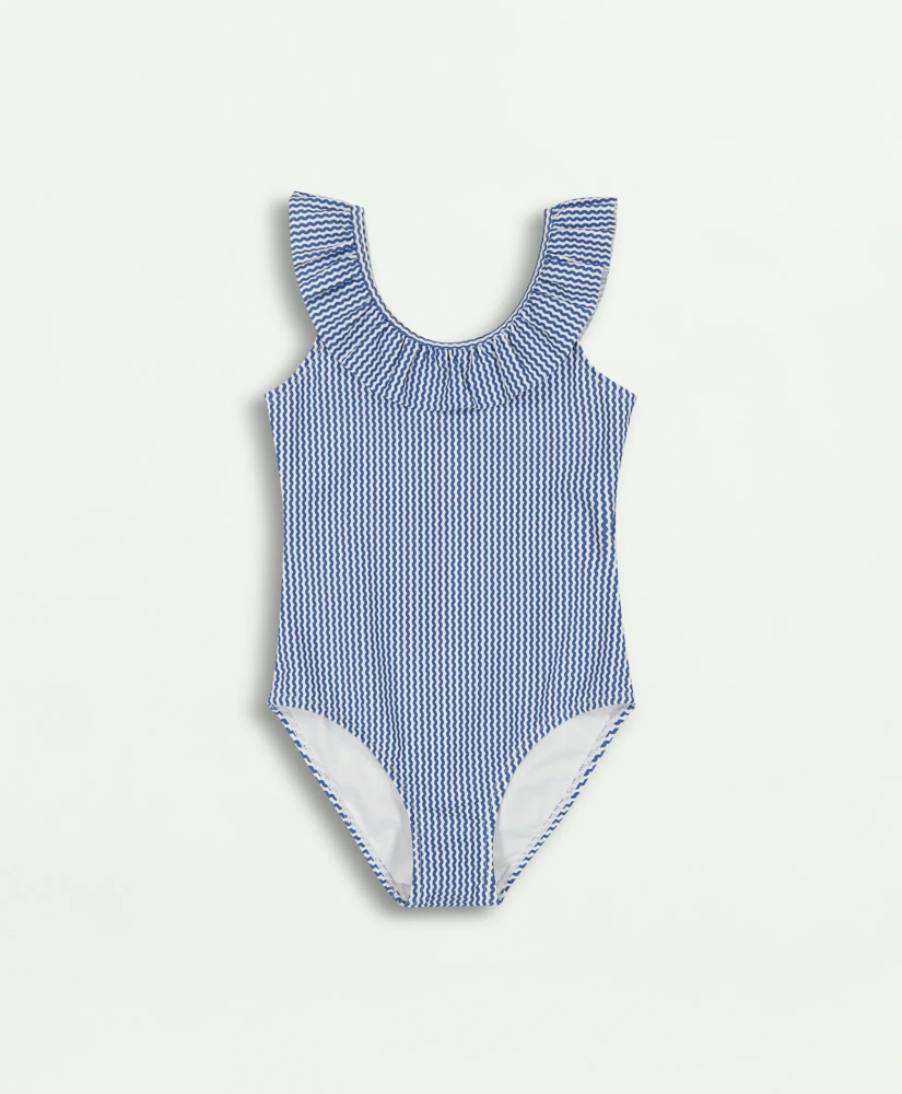 Girls One Piece Floral Print Ruffle Strap Swimsuit