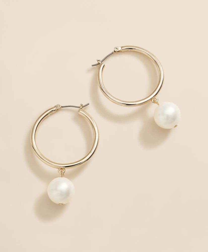 Two classics are combined with beautiful gold-tone hoops and lustrous drop faux pearls in our earrings that elevate your everyday style.
