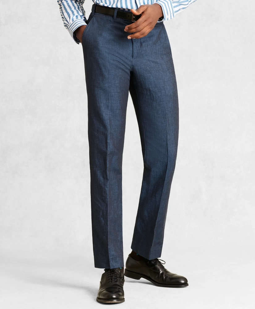 These chino-style twill trousers are perfect for warm weather, made from a lightweight blend of linen and cotton woven in Italy. Pre-washed for added softness. Button-tab closure. Unfinished hem. 65% linen, 35% cotton. Dry-clean. Made in Italy.