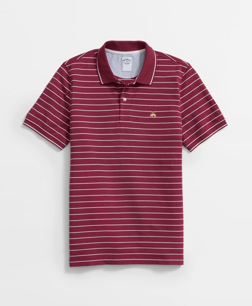 There's no polo like a Brooks Brothers polo. Designed for lasting comfort and durability, ours are cast in a traditional pique knit from pure American-grown Supima®, the world's finest cotton, with spandex for superior comfort and softness. We finished each polo with a signature performance treatment to retain shape and resist shrinking, fading and pilling. Additional features include an embroidered signature fleece logo at left chest.