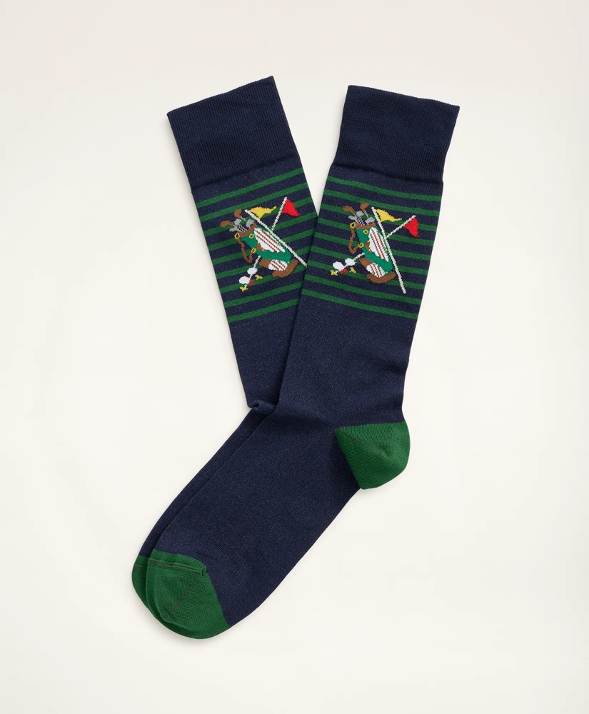 Our socks are known for their exceptional comfort and durability. Knitted with Spandex for optimal fit. Placed stripe with golf motif.