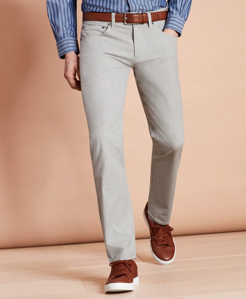 For a cool alternative to your favorite chinos or denim, try these lightweight pants made from cotton poplin with a hint of stretch added for comfort. Styled with a zip fly and button closure, striped pocket bags and chambray along the inner waistband. Our logo appears on a leather tag at the back pocket.