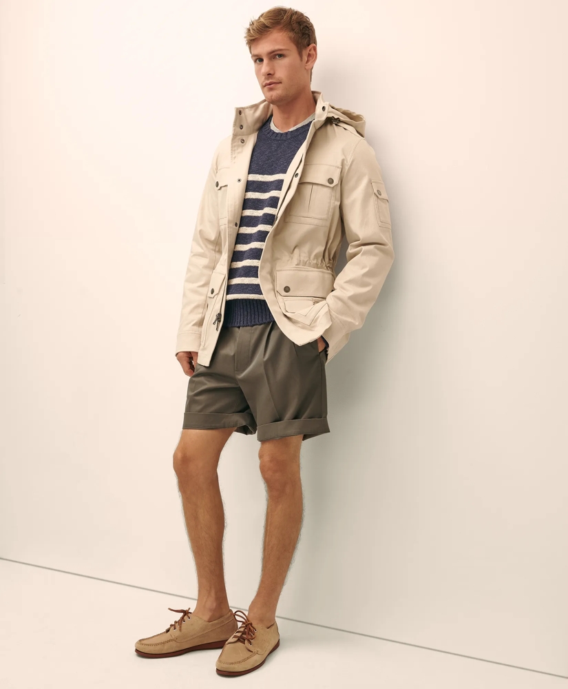 Our classic fishing jacket features copious pockets for yes, actual fishing gear, and also wallets, keys and phones. Sturdy double-weave cotton, grommet metal buttons and a pack away hood mark the attention to quality and detail from us you've come to know and love.