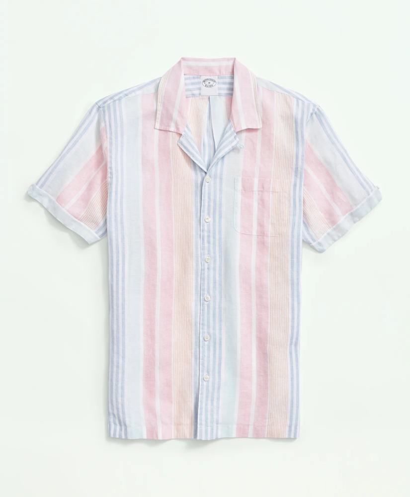 Irish Linen Camp Collar, Awning Stripe Short-Sleeve Sport Shirt