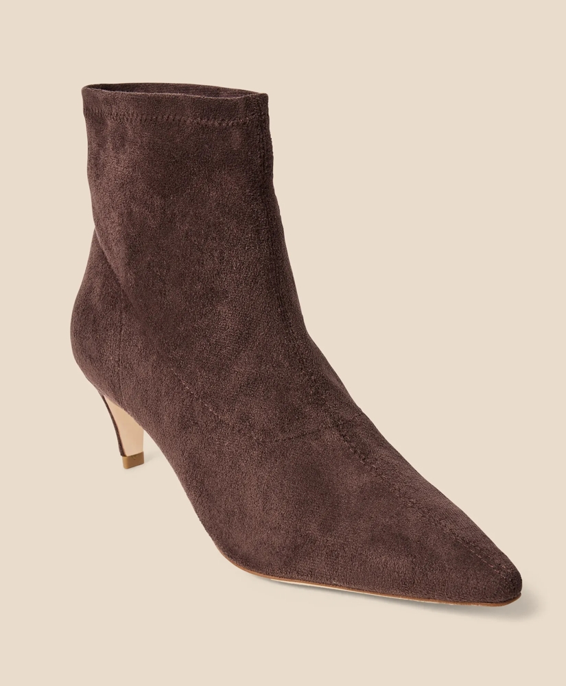 Rich in style and effortlessly chic, the Jack Rogers Charleston kitten heel ankle boots blend a vintage air with modern comfort. Crafted from soft stretch microsuede and lined with a plush interior, these cradle your feet all day long. The pointed toe and sleek 1.65-inch heel add a polished finish, while a durable rubber-blend sole ensures every step feels as comfortable as the first.