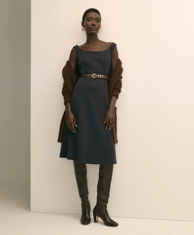 We cut this jersey knit dress in a double-stretch fabric that moves with you, then shaped it into a fit-and-flare silhouette with slightly off-the-shoulder straps for feminine detail. Princess seams refine the fit from bodice to skirt, and an invisible back zipper keeps the lines clean. It's effortless, flattering and endlessly wearable.