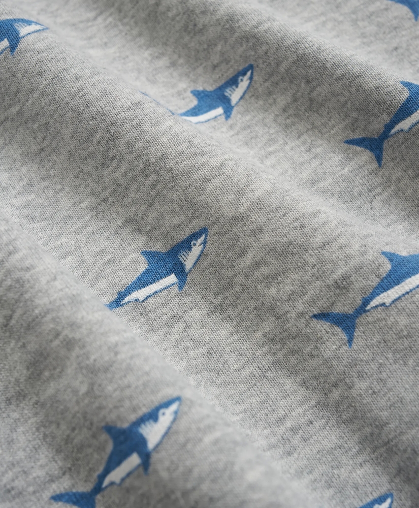 Sweet dreams are a comfy PJ set away with our light, breathable top and bottoms featuring an adorable swimming shark print.