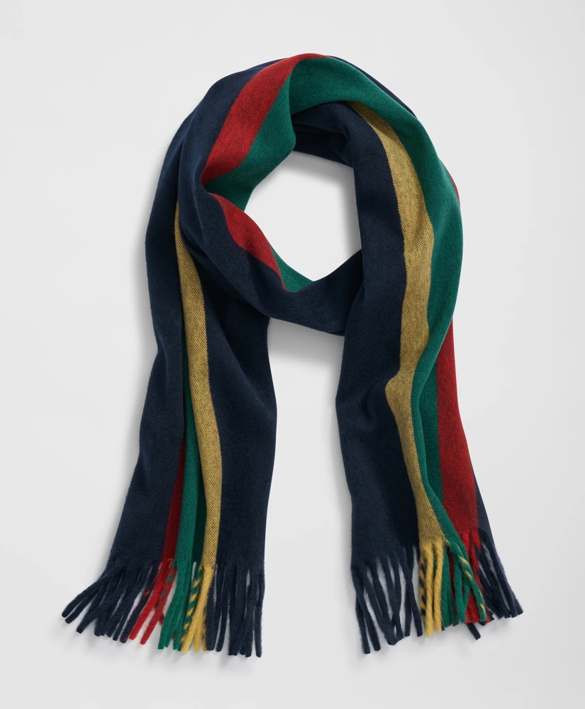 Crafted in Scotland, our classic fringe scarf is cast from ultra-soft lambswool yarn for an elevated approach to your outerwear style. You'll love wearing this prep-inspired pattern when the weather turns.