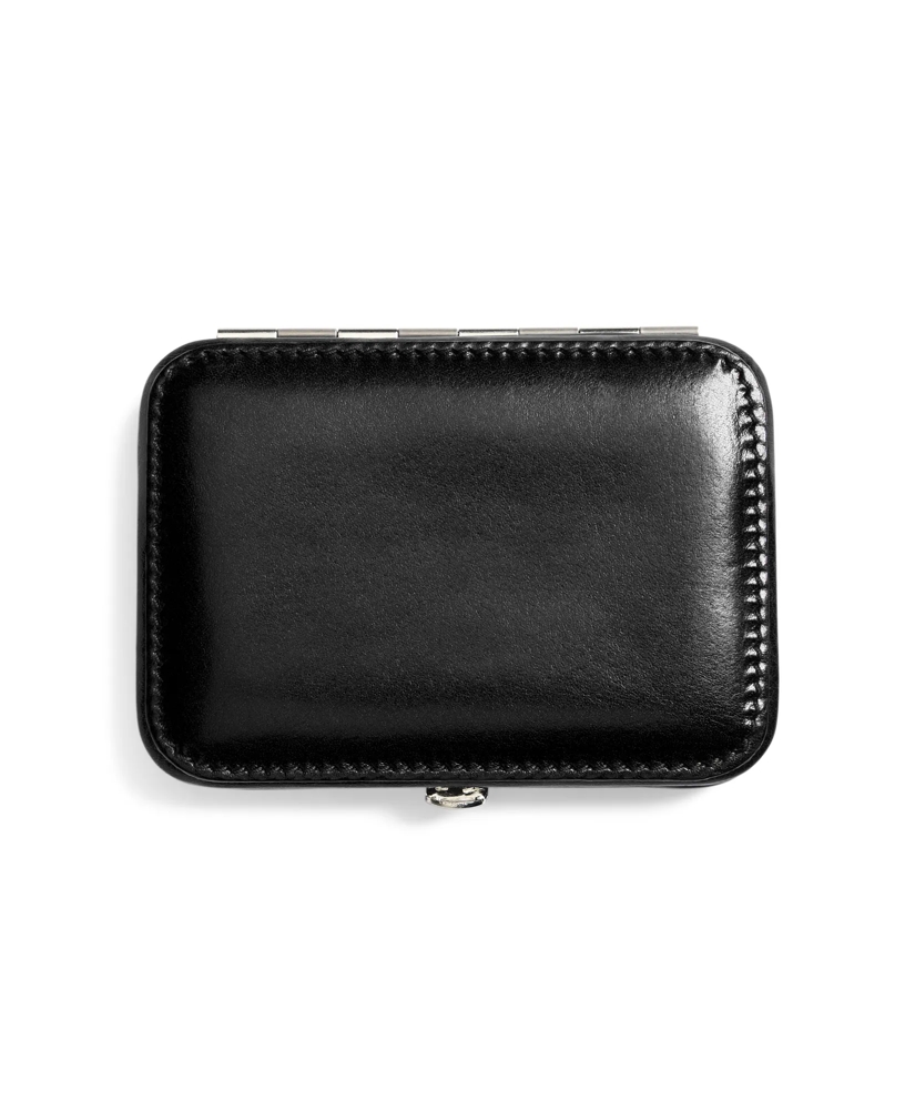 Genuine leather, lined in suede. Made in Germany. 3" x½" x 4".