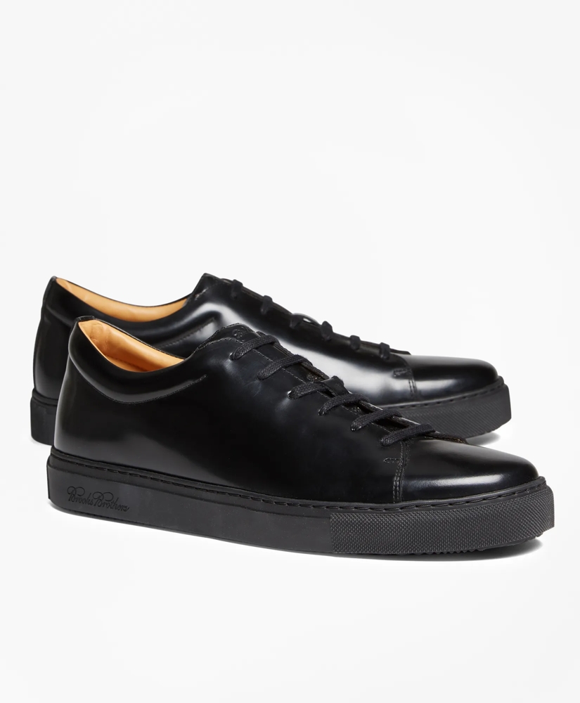 Calfskin leather upper with a rubber cup sneaker sole. Tonal laces. Made in Portugal.