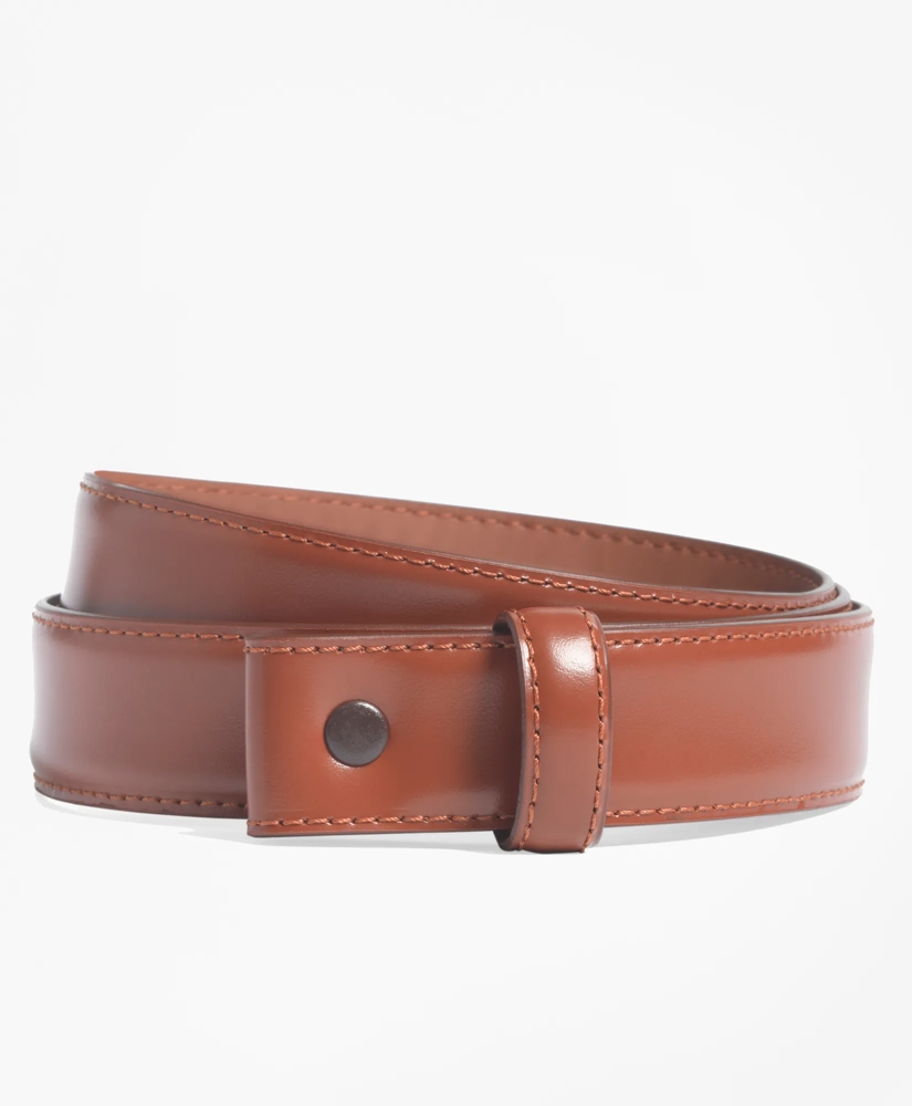 Calfskin leather with stitched edge. Single back snap for easy slide buckle attachment. 1" wide. Made in Italy.