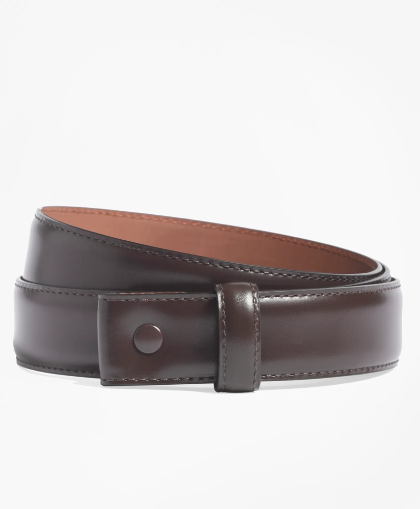 Calfskin leather with stitched edge. Single back snap for easy slide buckle attachment. 1" wide. Made in Italy.