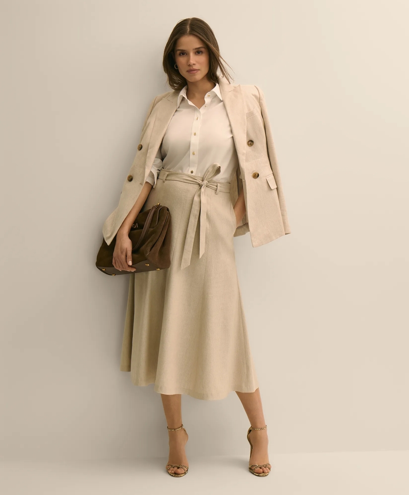 Our skirt is crafted from a perfect linen-lyocell blend for flawless movement. It's a must-have piece for your chicest looks. We finished it with a waist belt for styling versatility. Pair with our matching jacket for a coordinated look and head-to-toe modern sophistication.