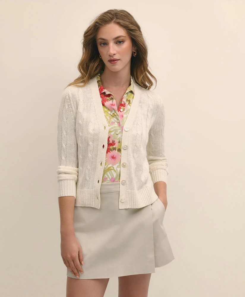 Linen Cable V-Neck Cardigan