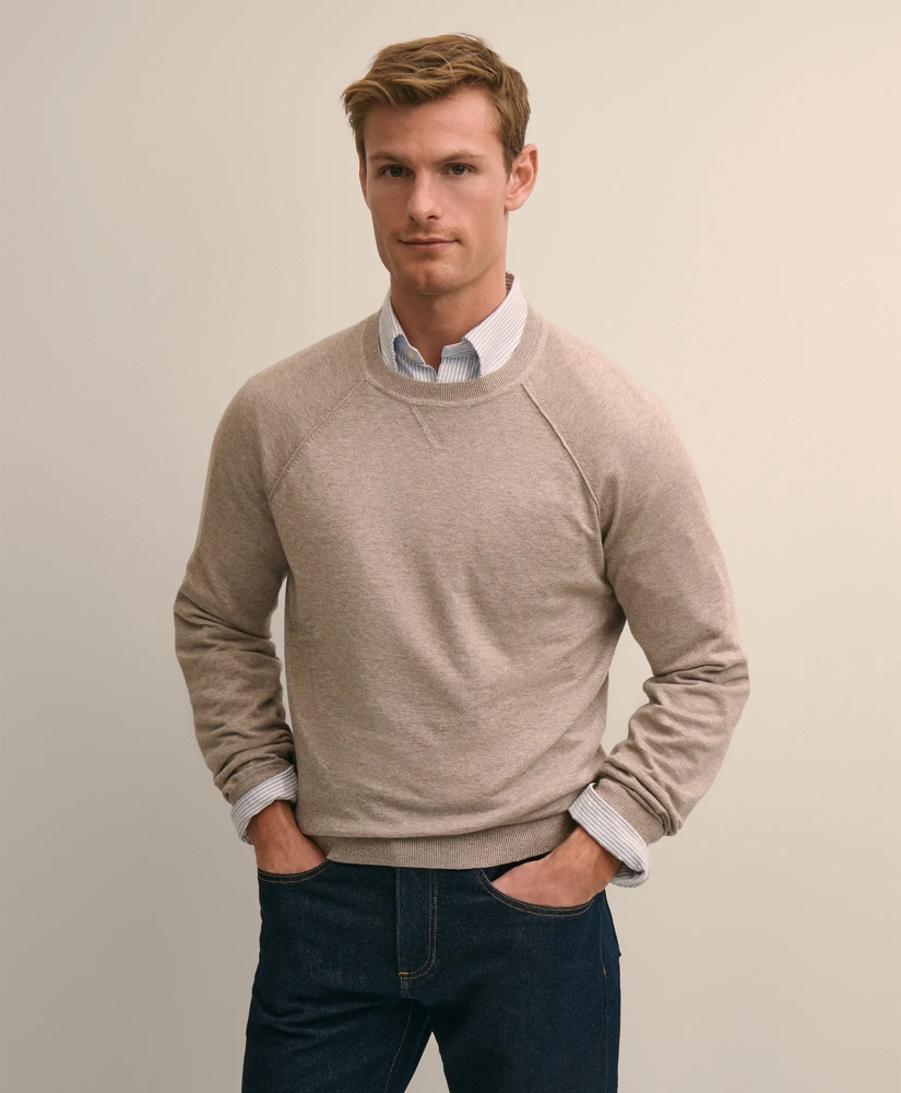When you want the styling and ease of a sweatshirt but need something more elevated, this sweater has you covered. Knit from an expertly spun blend of linen, cotton and cashmere yarns, it's as soft as your favorite terry cloth but refined enough to wear to dinner. Inverted shoulder seams add texture while the mouline pattern, characterized by its marled finish, gives a subtle nod to understated luxury.
