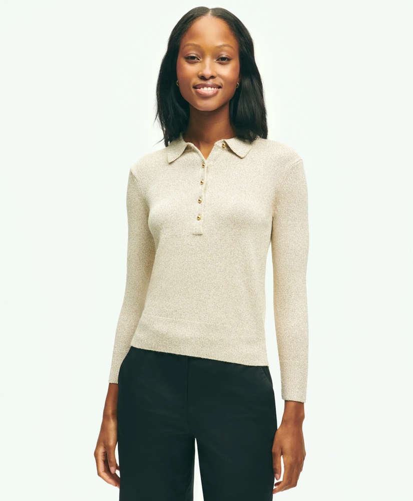 Brooks Brothers sets the standard for polo style. We created one of our signature pieces here in sparkly sweater form: A touch of metallic thread shimmers to perfection, and the casual silhouette offers a beautiful refinement.