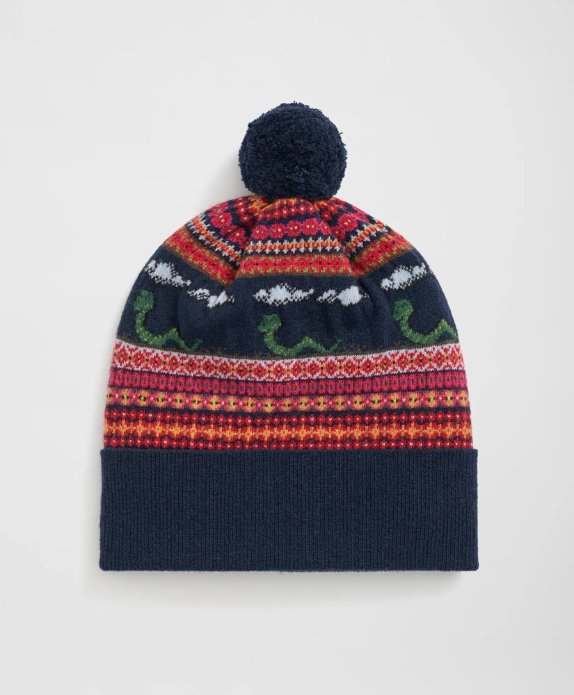Lunar New Year Wool-Blend Fair Isle Snake Motif Pom Beanie Hat