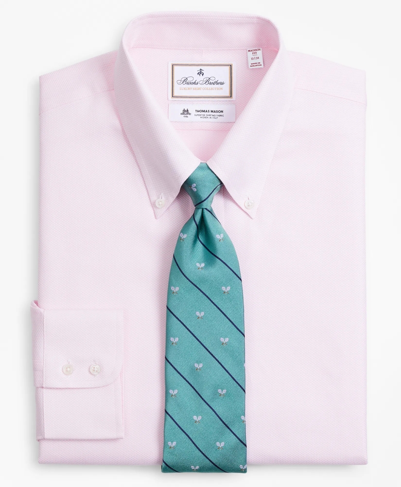 Crafted from fine Italian cotton woven by the renowned Thomas Mason® Mill, this shirt's clean, elegant look relies on modern design and traditional tailoring, including concealed stitching at the front shoulder and back yoke. This luxury shirt features genuine mother-of-pearl buttons, double-button barrel cuffs with our signature 6-Pleat Shirring® and pucker-free single-needle side seams. Finished with our iconic button-down collar a Brooks Brothers innovation. Machine wash. Imported.