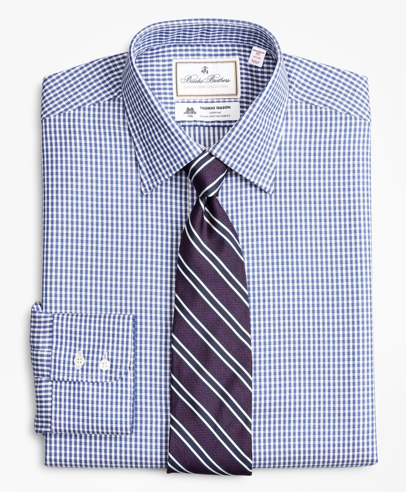 Crafted from fine Italian cotton woven by the renowned Thomas Mason® Mill, this shirt's clean, elegant look relies on modern design and traditional tailoring, including an invisible French placket and concealed stitching at the front shoulder and back yoke. Our luxury shirts feature genuine mother-of-pearl buttons, double-button barrel cuffs with our signature 6-Pleat Shirring® and pucker-free single-needle side seams. Finished with our new Franklin spread collar which measures 5½" from point to point, making a fine complement for a Half-Windsor tie knot. Machine wash. Imported.