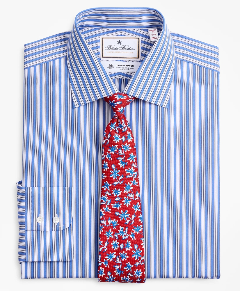 Crafted from fine Italian cotton woven by the renowned Thomas Mason® Mill, this shirt's clean, elegant look relies on modern design and traditional tailoring, including an invisible French placket and concealed stitching at the front shoulder and back yoke. Our luxury shirts feature genuine mother-of-pearl buttons, double-button barrel cuffs with our signature 6-Pleat Shirring® and pucker-free single-needle side seams. Finished with our new Franklin spread collar which measures 5½" from point to point, making a fine complement for a Half-Windsor tie knot. Machine wash. Imported.