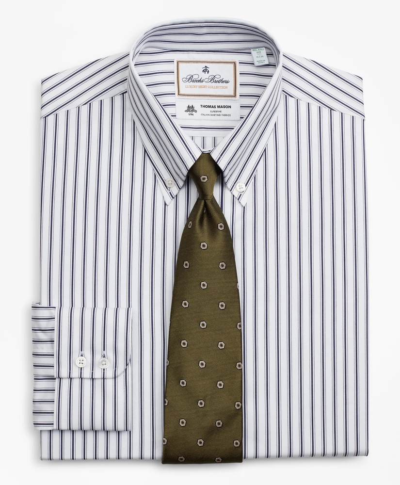 Crafted from fine Italian cotton woven by the renowned Thomas Mason® Mill, this shirt's clean, elegant look relies on modern design and traditional tailoring, including concealed stitching at the front shoulder and back yoke. This luxury shirt features genuine mother-of-pearl buttons, double-button barrel cuffs with our signature 6-Pleat Shirring® and pucker-free single-needle side seams. Finished with our iconic button-down collar a Brooks Brothers innovation. Machine wash. Imported.