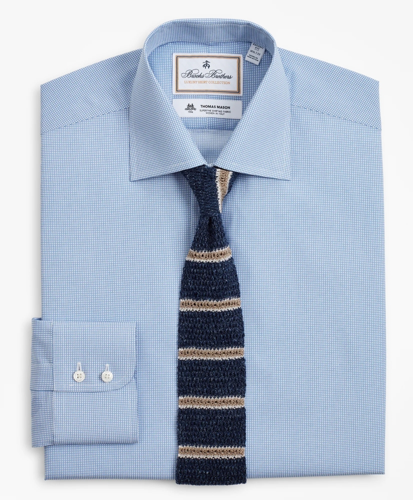 Crafted from fine Italian cotton woven by the renowned Thomas Mason® Mills, this shirt's clean, elegant look relies on modern design and traditional tailoring, including an invisible French placket and concealed stitching at the front shoulder and back yoke. Our luxury shirts feature genuine mother-of-pearl buttons, double-button barrel cuffs with our signature 6-Pleat Shirring® and pucker-free single-needle side seams. Finished with our new Franklin spread collar which measures 5½" from point to point, making a fine complement for a Half-Windsor tie knot. Machine wash. Imported.