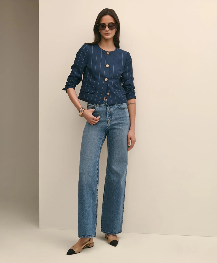 We took two of-the-moment design elements and elevated them into a new-classic piece you'll love for years to come. A chic collarless neckline and cropped silhouette feels undeniably modern while flattering vertical stripes keep the look timeless. Pair with our matching pants for coordinated style.
