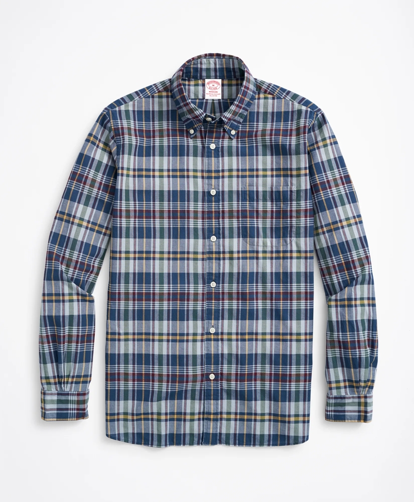 This sport shirt crafted from rich cotton madras, woven exclusively for us in India. Lightly washed for extra softness. It features our iconic button-down collar, signature 6-Pleat Shirring® at the barrel cuffs and a left chest pocket.
