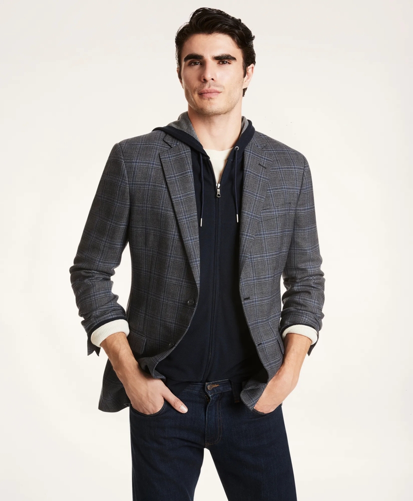 Crafted from 100% wool woven in Italy. Madison fit two-button with notch lapel, flap pockets, center vent and finished sleeves. Dry clean. Imported.