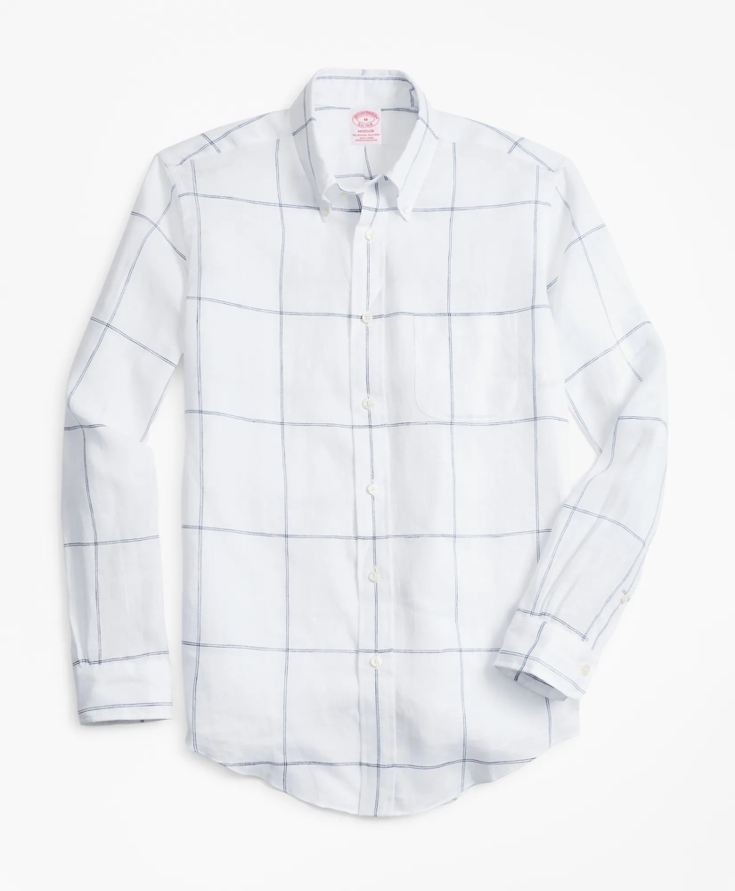 Madison Relaxed-Fit Sport Shirt, Large-Windowpane Irish Linen